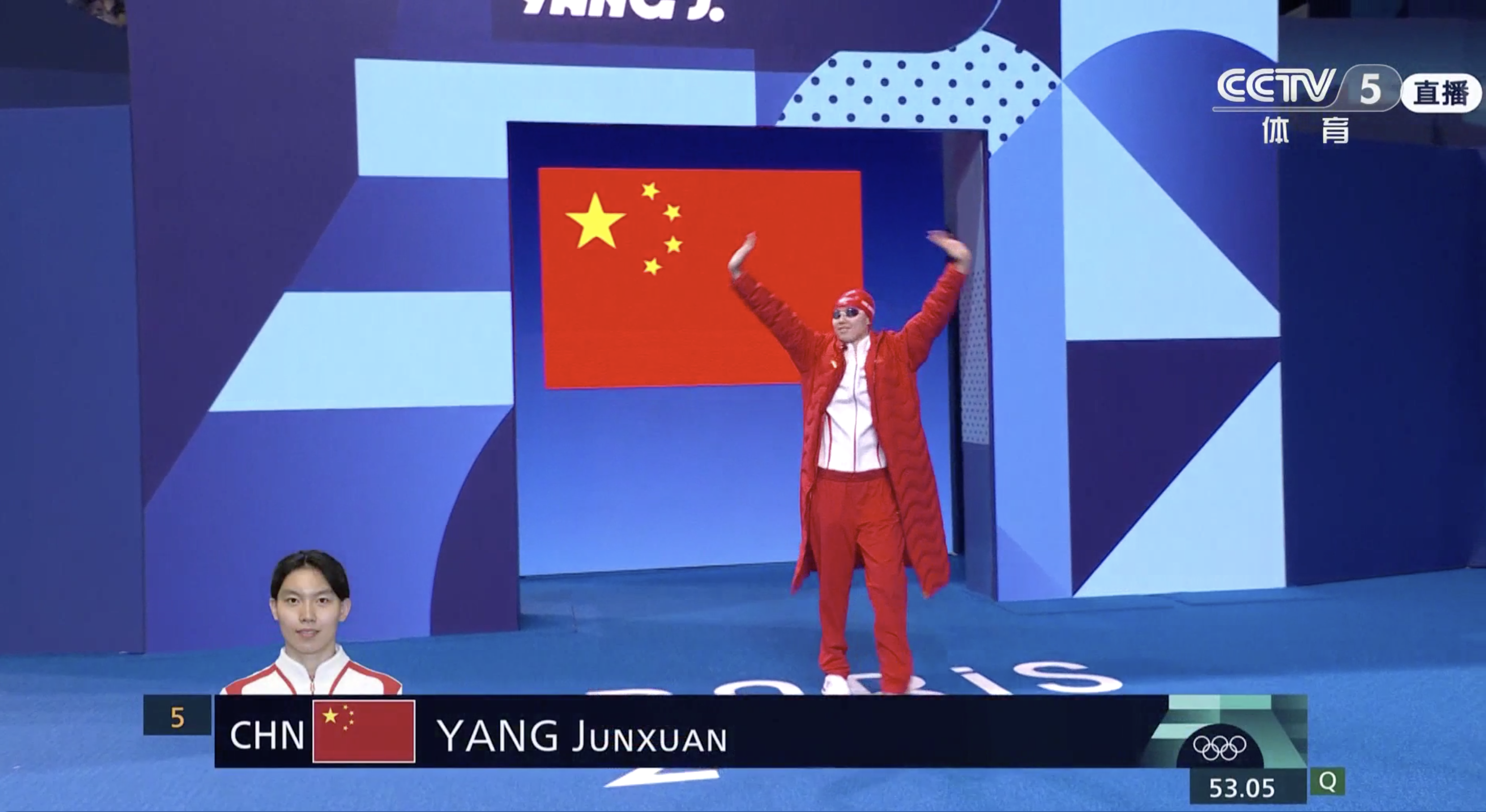 北京时间7月31日,巴黎奥运会女子100米自由泳半决赛,中国选手杨浚瑄、吴卿风出战。杨浚瑄以52秒81完赛,排名第4顺利晋级,吴卿风无缘决赛。